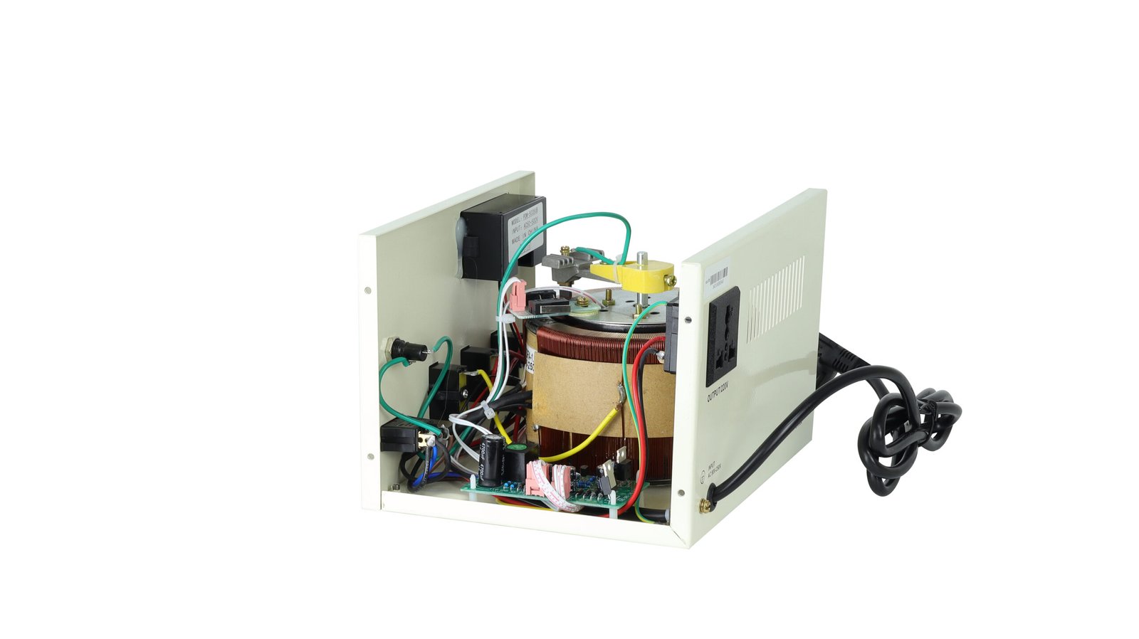 جهاز منظم وحامي جهد كهربائي أوتوماتيك يعمل بنظام السيرفو موتور (Servo Motor)، مصمم خصيصًا لحماية الأجهزة المنزلية من ارتفاع وانخفاض التيار الكهربائي، مثل التلفزيونات، الثلاجات، أجهزة الكمبيوتر، الرسيفر، وأجهزة المنزل الحساسة.